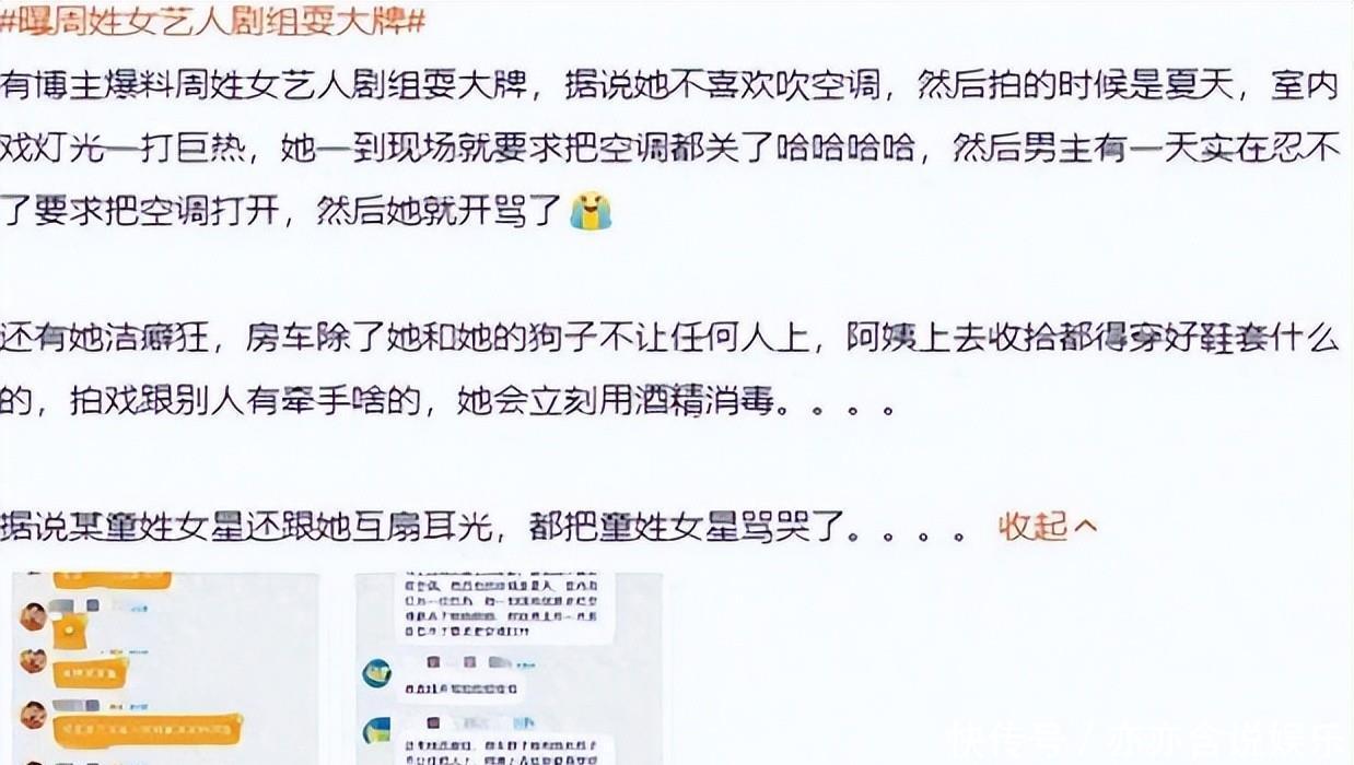 周姓女艺人耍大牌爆料!夏日片场高温惊现离谱操作。某周姓女星仗势耍大牌,苛待工作人员。更与同行爆发冲突致对方落泪。一波波操作引爆全网,刷新圈内艺德下限。